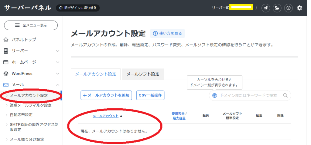 「Xサーバー メールアカウントがない」で検索。